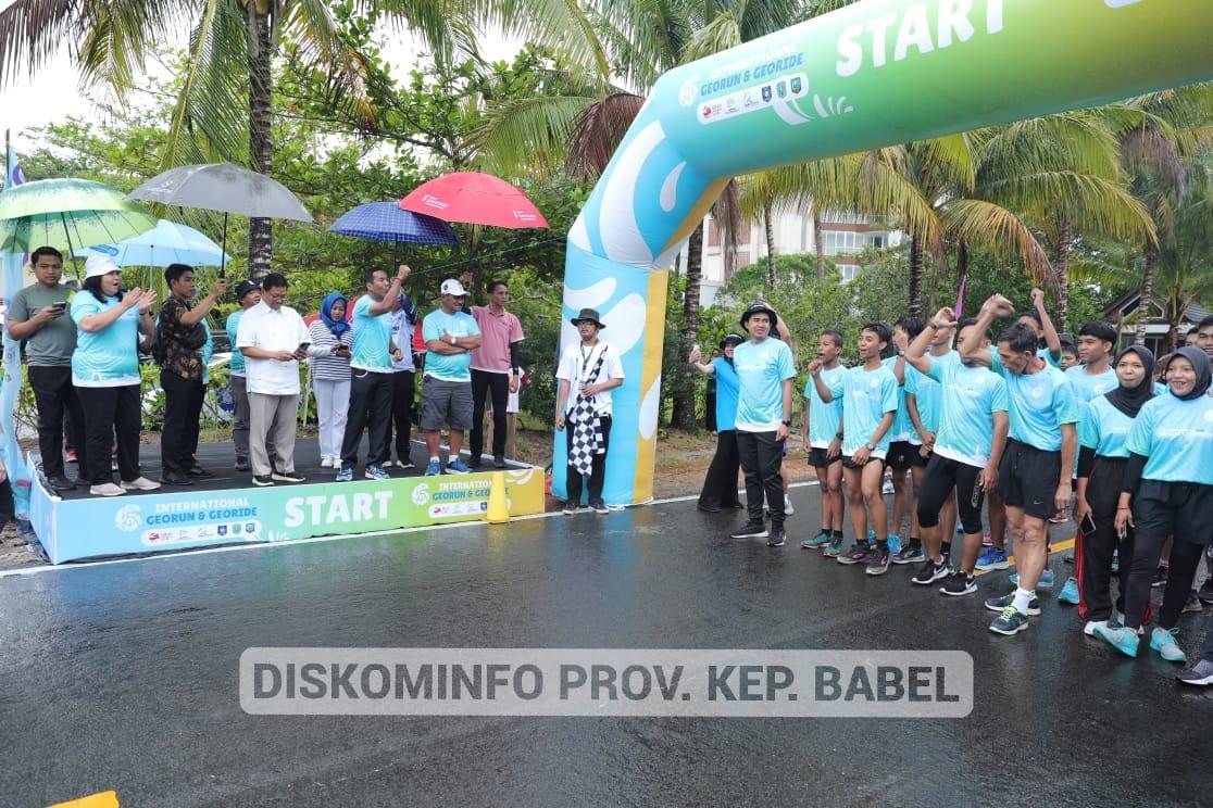 Selain itu, Pj Gubernur Suganda menyampaikan apresiasi yang luar biasa kepada para peserta Geo Run dan Geo Ride karena masih tetap semangat melaksanakan acara meskipun diguyur hujan sejak pagi tadi.