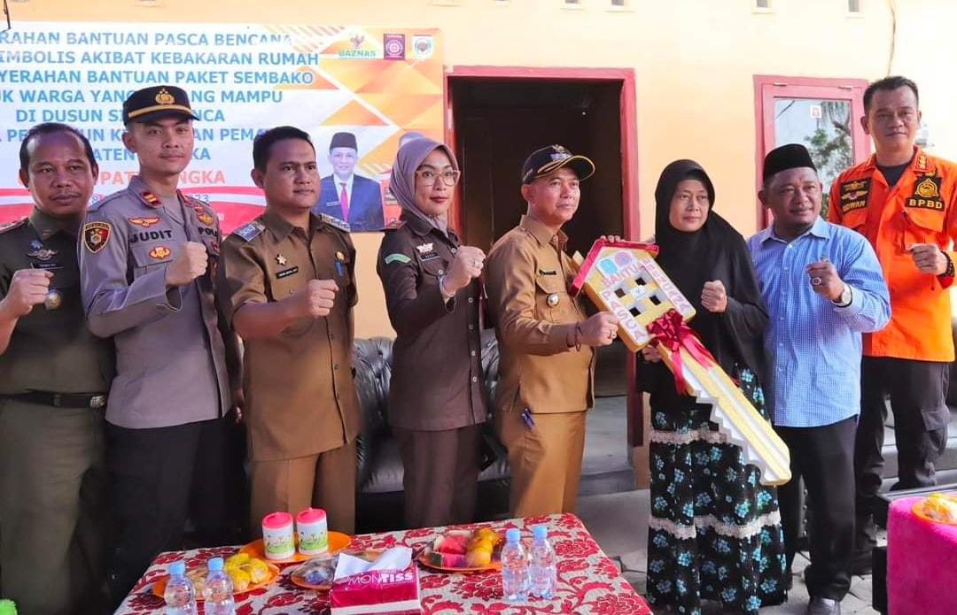 Bantuan Ini sebagai tindak lanjut dari kebakaran rumah yang beberapa waktu lalu melanda kediaman Ibu Khomisah di Dusun Sinar Panca, Desa Penyamun, Kecamatan Pemali, Kabupaten Bangka.
