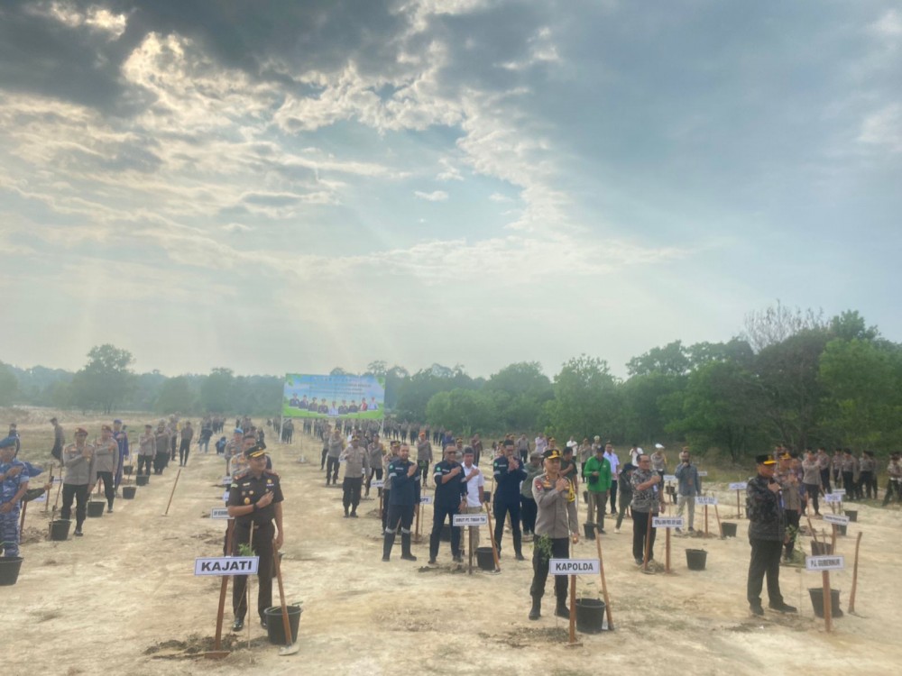 “Selama tiga tahun terakhir, kami telah menanam 266.000 bibit di lahan seluas 255,4 hektar. Hari ini, secara serentak, kami menanam 4.000 bibit pohon di lahan seluas 27 hektar,” jelas Kapolda.