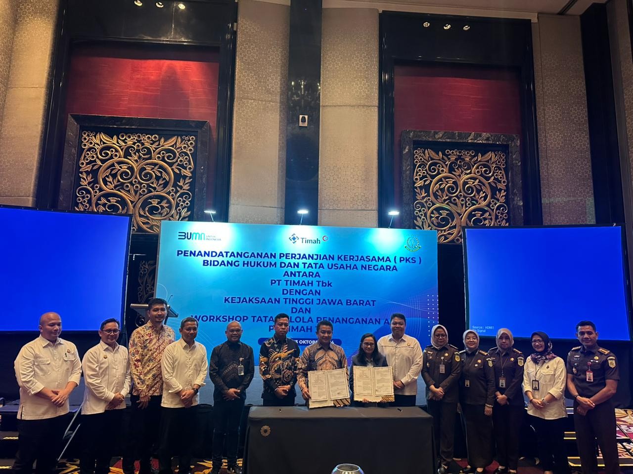 Penandatanganan perjanjian dilakukan oleh Direktur Utama PT Timah, Ahmad Dani Virsal, dan Kepala Kejaksaan Tinggi Jawa Barat, Katarina Endang Sarwestri, di hadapan Direktur SDM PT Timah, Hendra Kusuma Wardana, serta Wakil Kepala Kejaksaan Tinggi Jawa Barat, Riyono, di The Trans Luxury Hotel, Bandung, pada 23-24 Oktober 2024.
