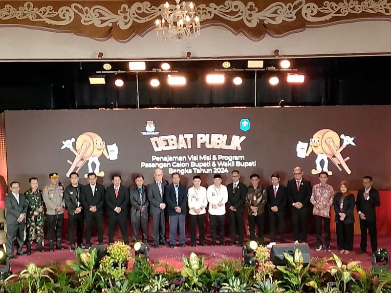 Bangka, Deteksi Pos – Debat publik pasangan calon Bupati dan Wakil Bupati Bangka 2024 pada Rabu malam (13/11/2024) di Aula Aurora Pantai Tanjung Pesona, Sungailiat, menghadirkan visi dan misi calon pemimpin Bangka untuk pembangunan yang berkelanjutan. Disiarkan secara langsung melalui INews TV, acara ini menjadi ajang penting bagi masyarakat Bangka untuk menyimak rencana kandidat.