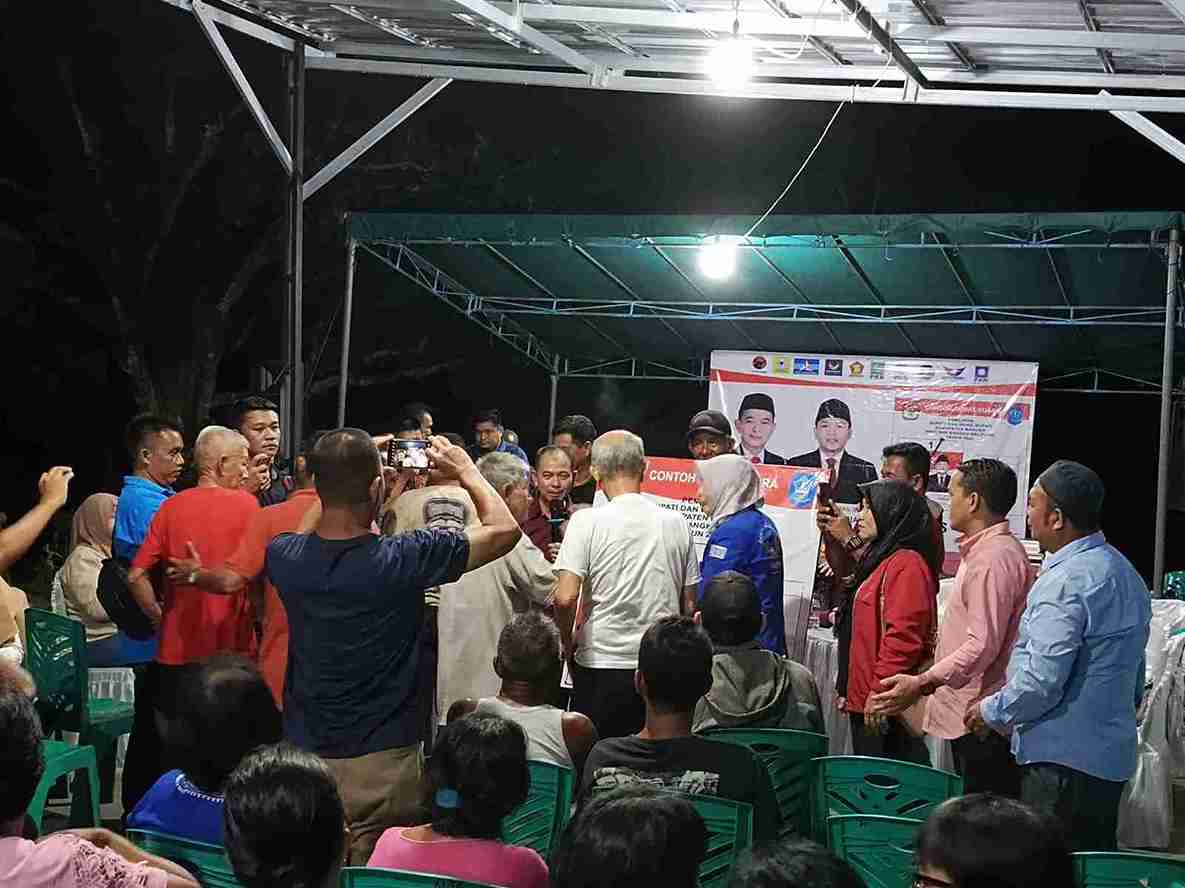 Belinyu, Deteksi Pos – Pasangan calon Bupati dan Wakil Bupati Bangka nomor urut 1, Mulkan-Ramadian, menggelar kampanye tatap muka di rumah Natalius atau Aliang di Lingkungan Parit 3, Kelurahan Romodong, Jumat sore (22/11/2024). Acara ini dihadiri tokoh masyarakat, tokoh politik, dan warga setempat dengan antusiasme tinggi.
