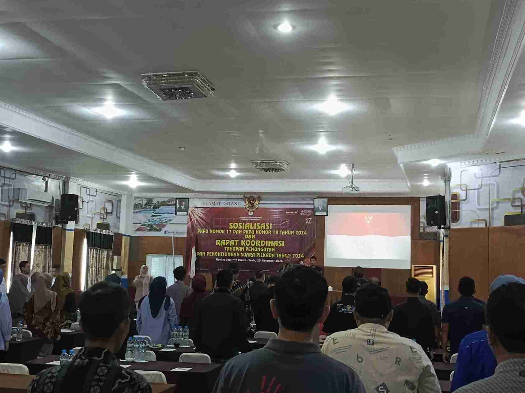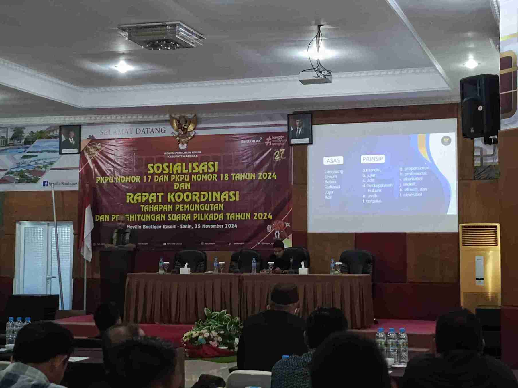 Sungailiat, Deteksi Pos – Komisi Pemilihan Umum (KPU) Kabupaten Bangka mengadakan sosialisasi Peraturan KPU (PKPU) Nomor 17 dan 18 Tahun 2024 sekaligus rapat koordinasi terkait tahapan pemungutan dan penghitungan suara Pilkada Serentak 2024. Acara tersebut berlangsung pada Senin (25/11/2024) di Gedung Wallet 3, lantai 3, Novilla Resort, Sungailiat.