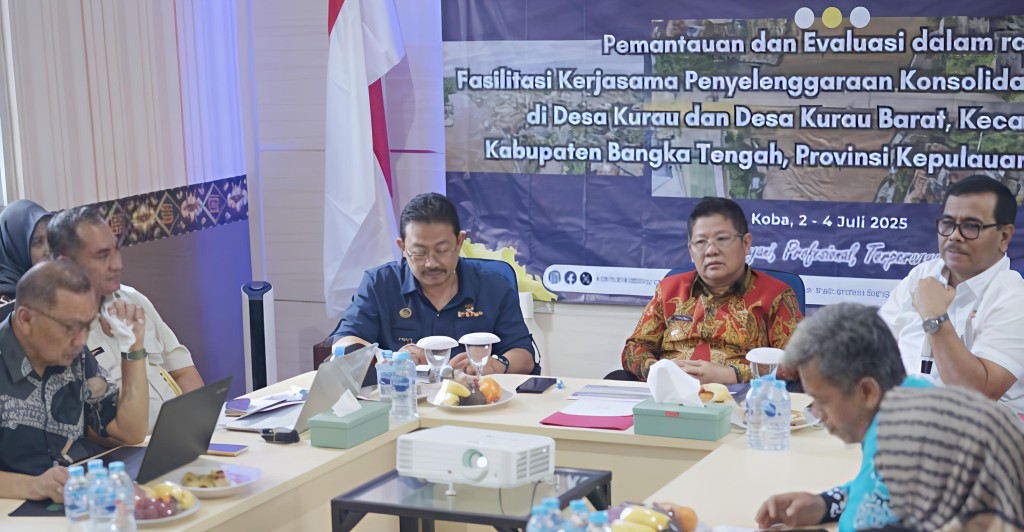 KOBA, DeteksiPos – Kantor Pertanahan (Kantah/BPN) Kabupaten Bangka Tengah bersama Pemerintah Kabupaten Bangka Tengah melakukan pemantauan dan evaluasi dalam rangka fasilitasi kerja sama penyelenggaraan Konsolidasi Tanah Wilayah II di Desa Kurau dan Desa Kurau Barat, Kecamatan Koba, yang digelar di Ruang Rapat Kantor Pertanahan Kabupaten Bangka Tengah, Kamis (03/07/2025).